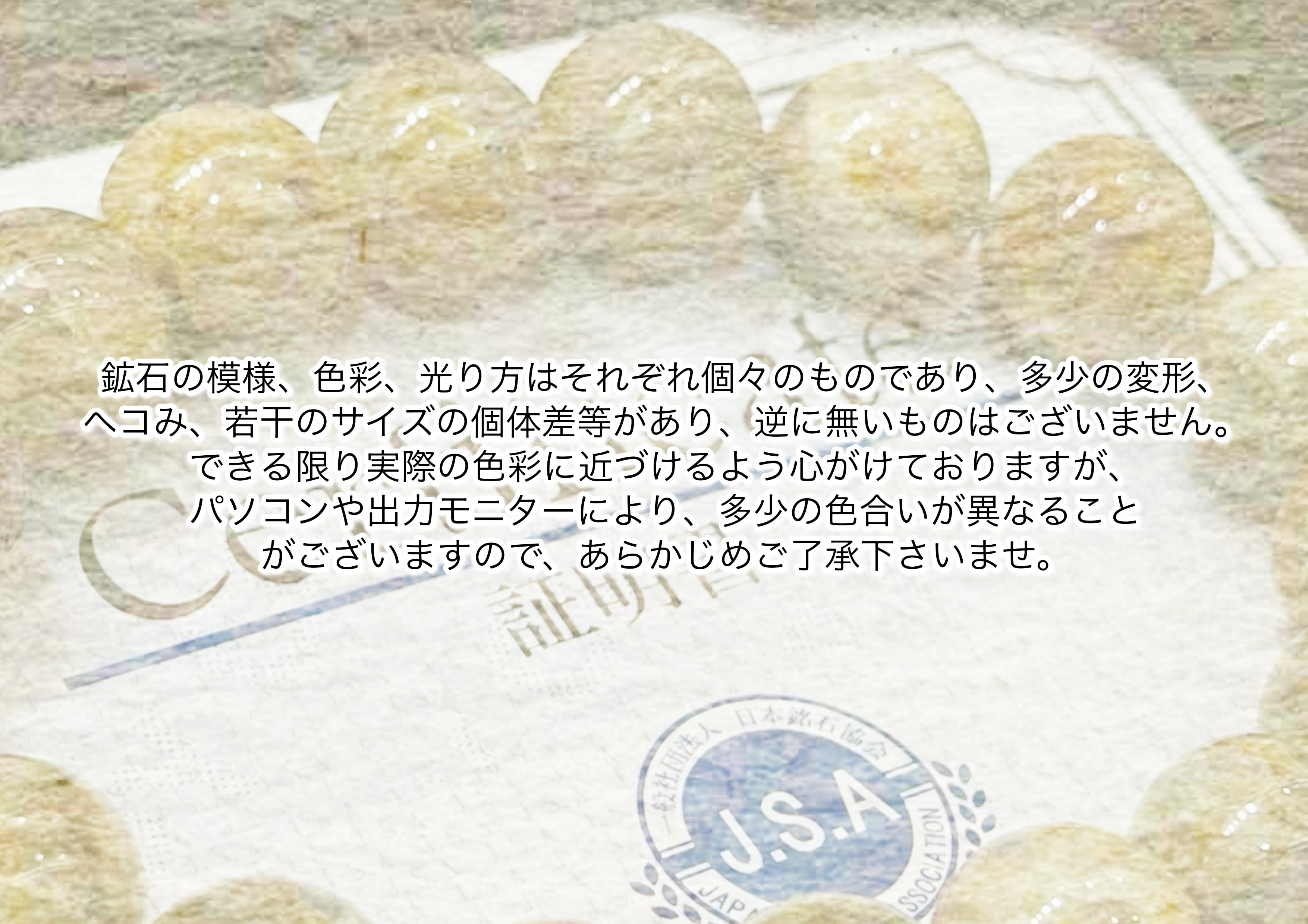 ご注意:天然石は人工物ではございません。生成の過程でクラックやインクルージョンが含まれたものも混入する可能性がありますが、天然の傷も個々の表情となります。また完全に傷がない天然石はございませんので、その内容での返品交換は致しかねます。あらかじめご了承下さい。
